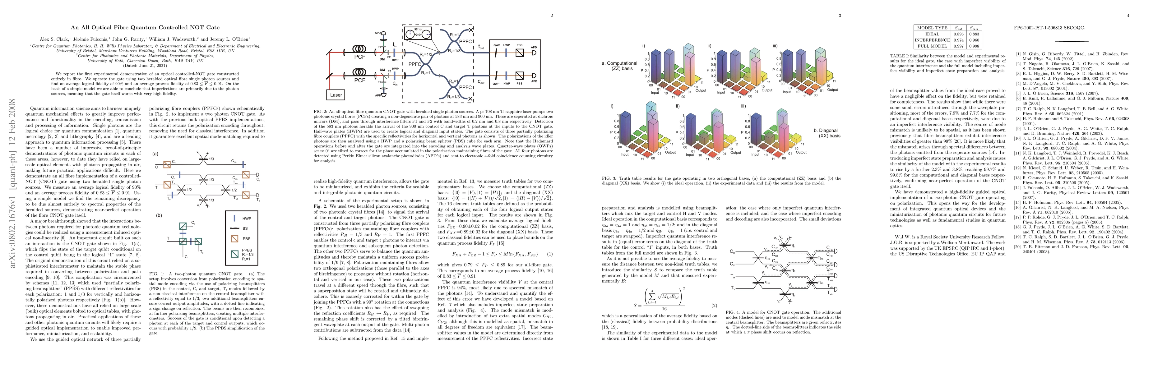 This paper presents the first experimental realization of an all-optical fibre-based controlled-NOT gate, achieving a logical fidelity of 90% and a process fidelity between 0.83 and 0.91. The authors attribute the observed imperfections primarily to the optical fibre single photon sources rather than the gate itself.