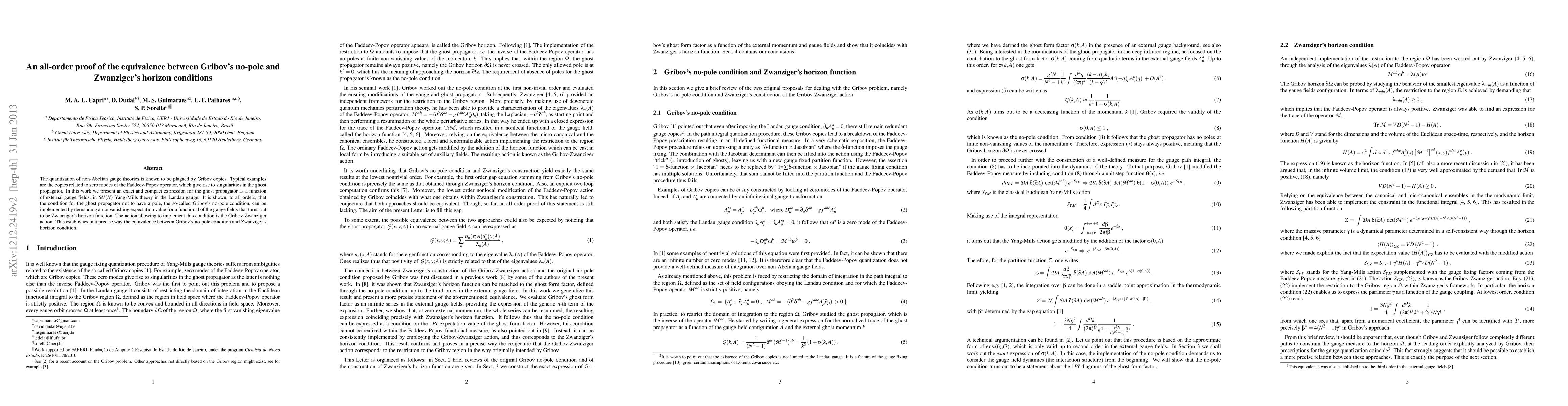 This paper presents an all-order proof demonstrating the equivalence between Gribov's no-pole condition and Zwanziger's horizon condition in SU(N) Yang-Mills theory. It shows that the absence of poles in the ghost propagator can be achieved by enforcing Zwanziger's horizon function, establishing the equivalence through the Gribov-Zwanziger action.