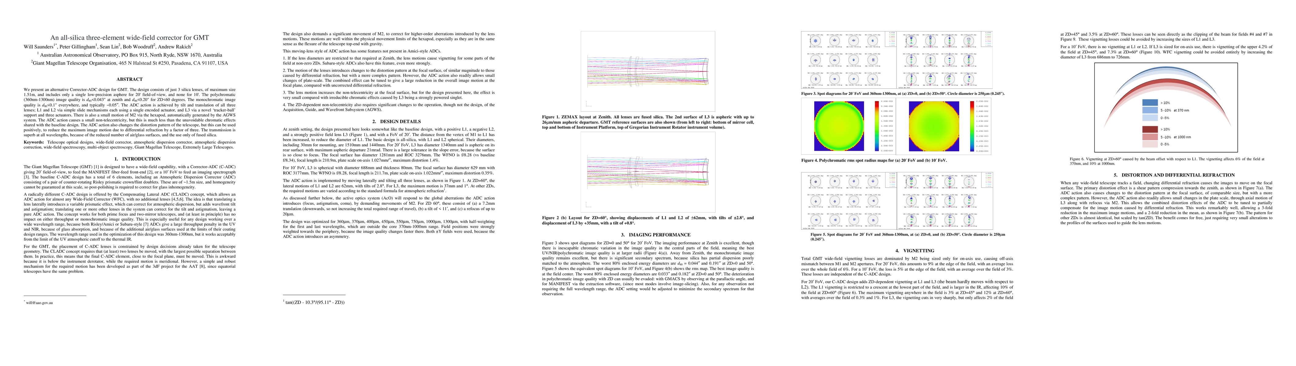 Researchers have developed a new 3-element wide-field corrector for the Giant Magellan Telescope (GMT) using all-silica lenses, achieving high image quality with minimal chromatic effects.