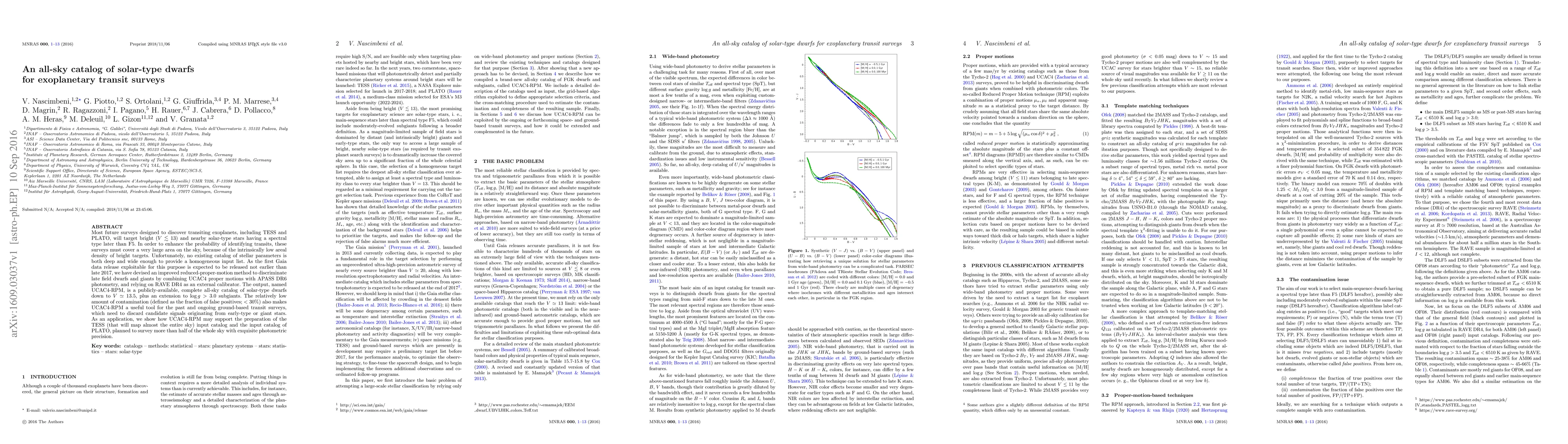 This paper presents a new all-sky catalog, UCAC4-RPM, of solar-type dwarfs suitable for exoplanet transit surveys, using improved reduced-proper-motion methods and combining UCAC4 proper motions with APASS photometry. The catalog is designed to support future missions like TESS and PLATO by providing a comprehensive list of bright, nearby solar-type stars, with minimal contamination.