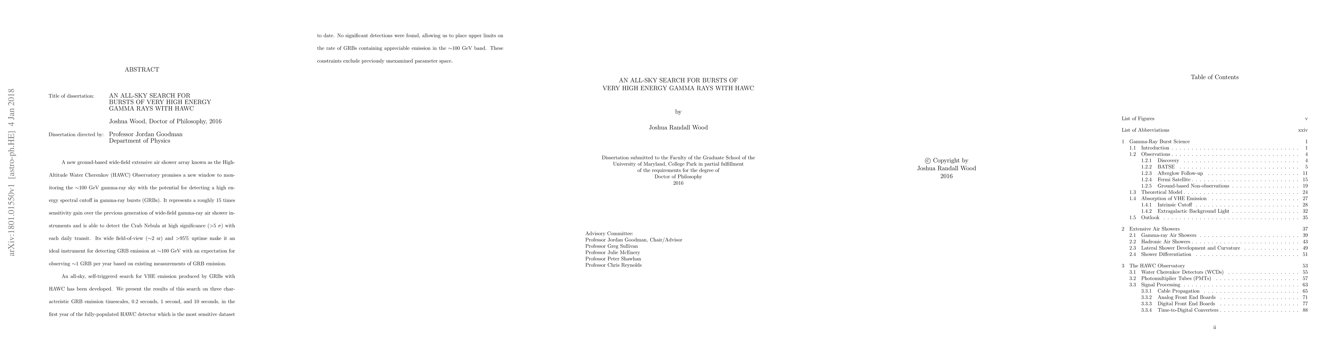 The HAWC Observatory conducted an all-sky search for very high energy gamma rays from GRBs, finding no significant detections in the first year of operation. The results place new upper limits on the rate of GRBs emitting at $\sim$100 GeV, thereby constraining previously unexplored parameter space.