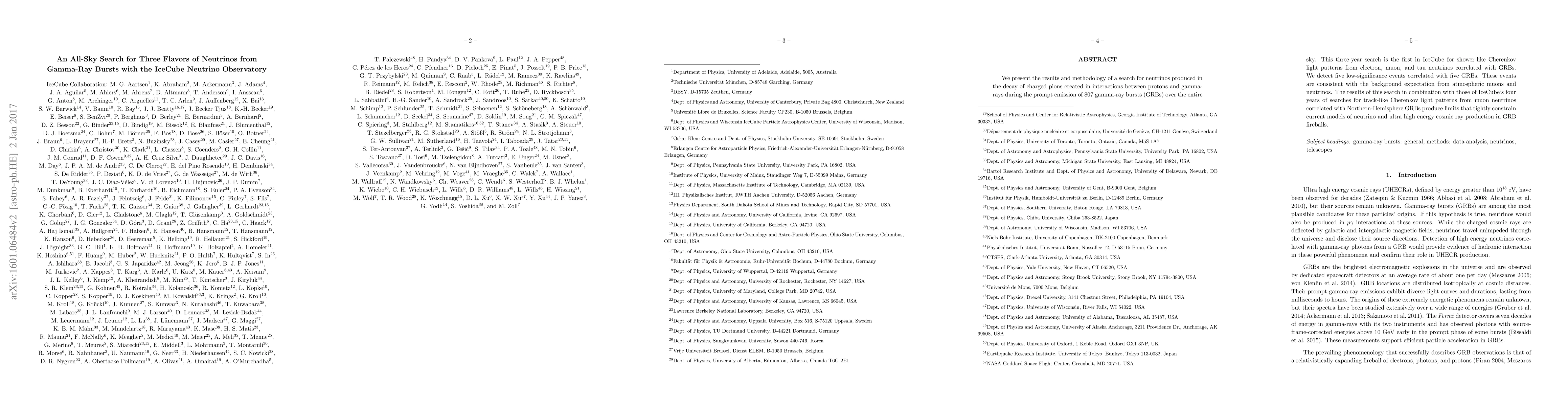 Researchers conducted a three-year search for neutrinos from gamma-ray bursts using the IceCube Neutrino Observatory and found five low-significance events that are consistent with background expectations.