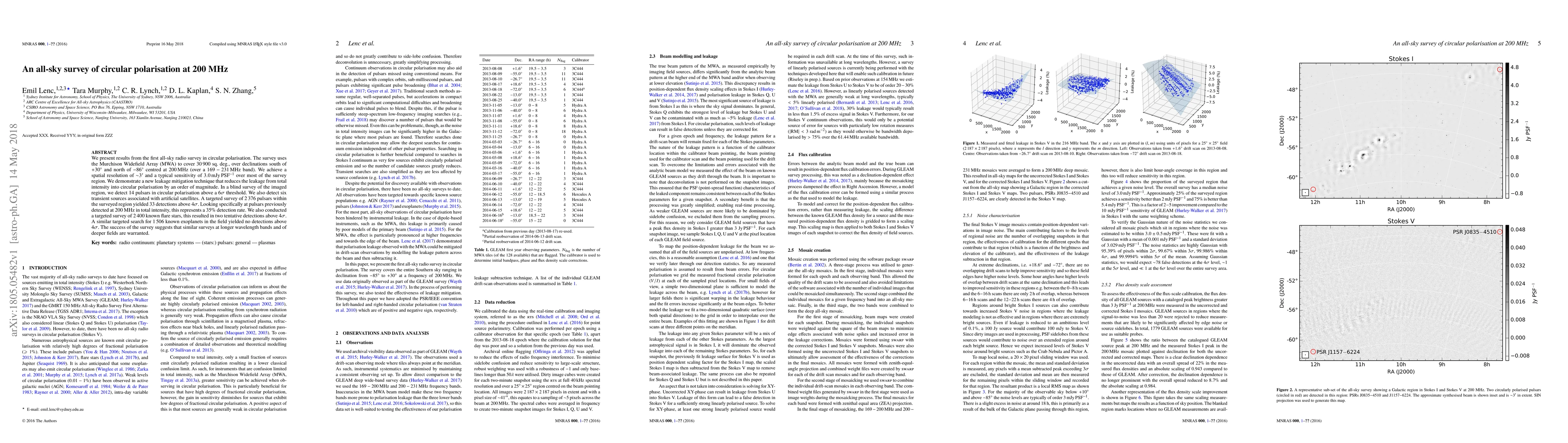 This study conducts the first all-sky radio survey in circular polarization, detecting 14 pulsars and six artificial satellites, with a detection rate of 35% for previously detected pulsars.