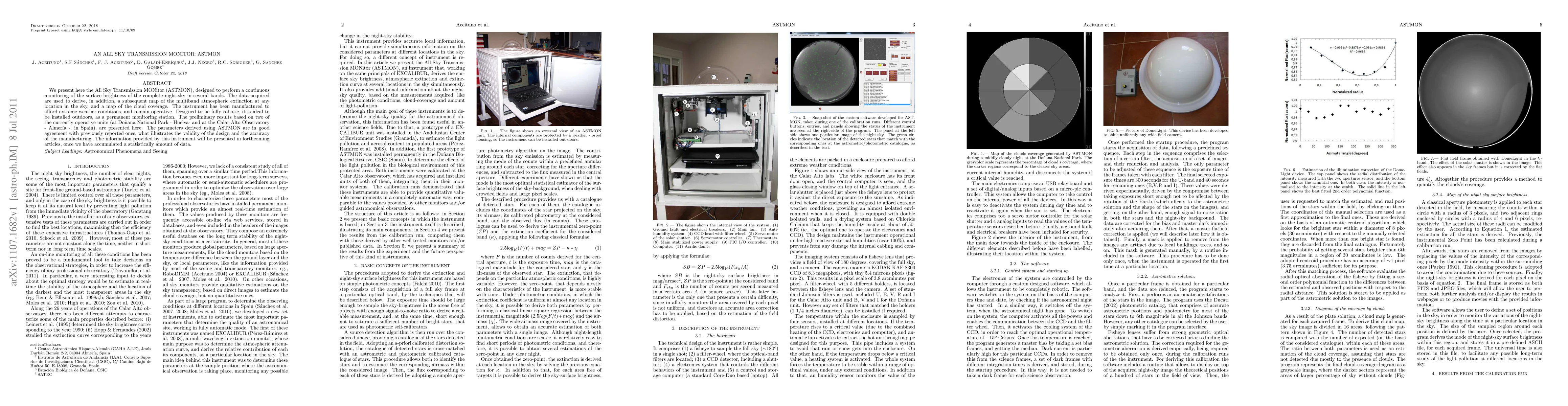 The All Sky Transmission MONitor (ASTMON) continuously monitors night-sky brightness across multiple bands, providing atmospheric extinction and cloud coverage maps. Preliminary results from two operational units in Spain show good agreement with previous data, validating the design and manufacturing.