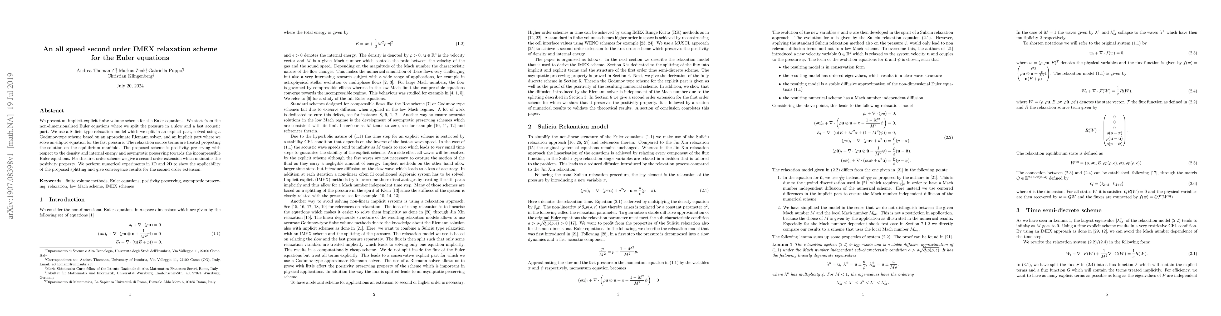 This paper introduces an implicit-explicit finite volume scheme for the Euler equations, splitting pressure into slow and fast parts. The scheme maintains positivity for density and internal energy and is extended to second order while preserving these properties, validated through numerical experiments.