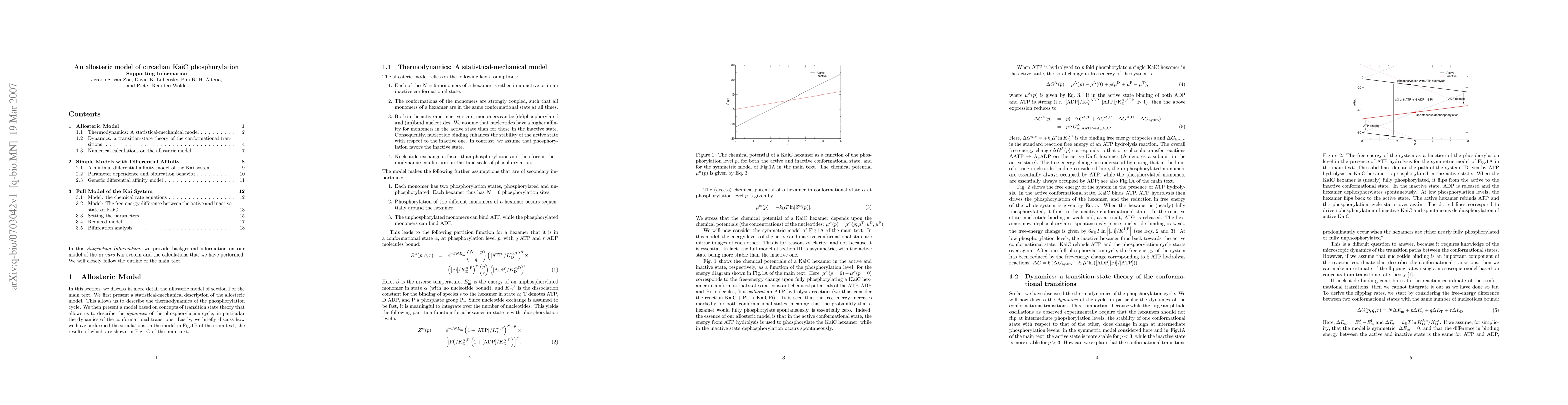 Summary: This Supporting Information elaborates on the allosteric model for circadian KaiC phosphorylation, detailing the in vitro Kai system background and computational calculations supporting the main text's findings. It provides essential data to validate the proposed model.