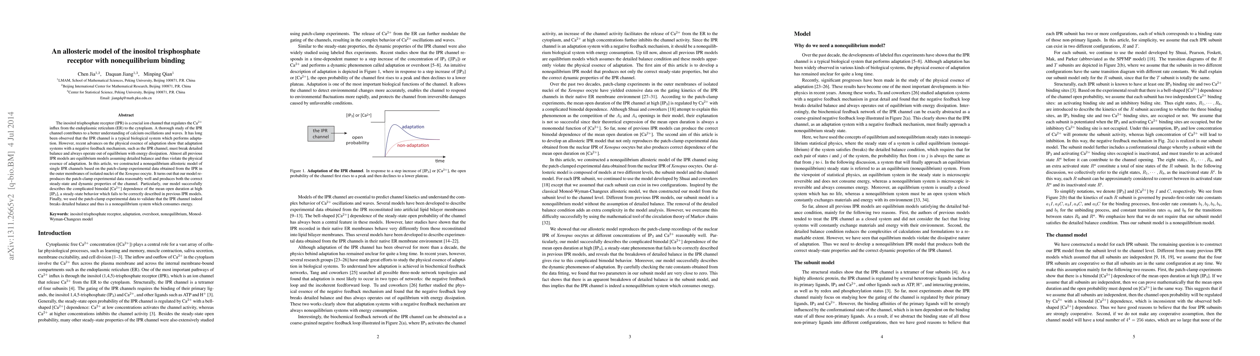 A new nonequilibrium model of the inositol trisphosphate receptor accurately reproduces experimental data on its Ca2+ influx regulation, revealing it as a non-equilibrium system that consumes energy.