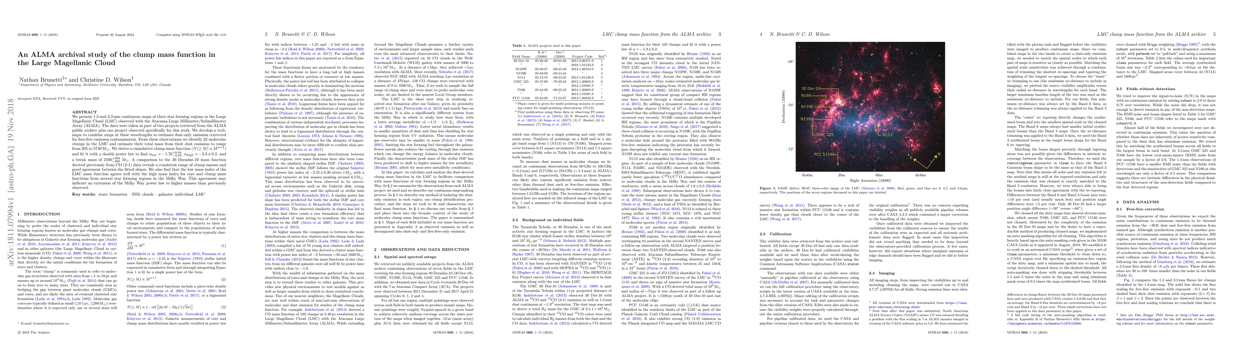 This study uses ALMA data to analyze three star-forming regions in the Large Magellanic Cloud, identifying 32 molecular clumps with masses ranging from 205 to 5740 M$_{\odot}$. The derived clump mass function fits a double power law, suggesting a consistent range of clump masses and a potential extension of the Milky Way's power law to higher masses.