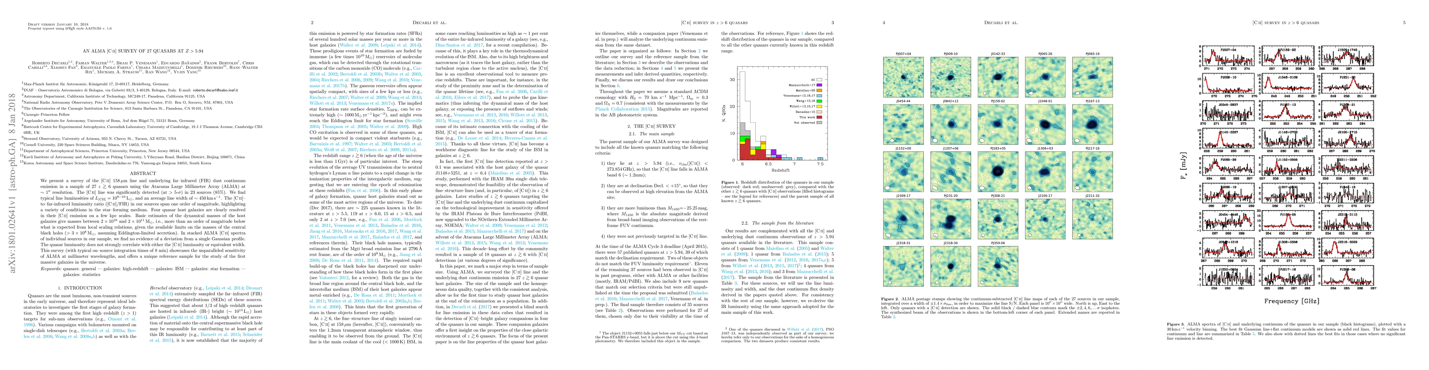This ALMA survey of 27 high-redshift quasars detected the [CII] line in 85% of sources, revealing diverse star-forming conditions and host galaxy masses significantly lower than expected from local scaling relations. The study highlights ALMA's sensitivity and provides a reference sample for early massive galaxy studies.