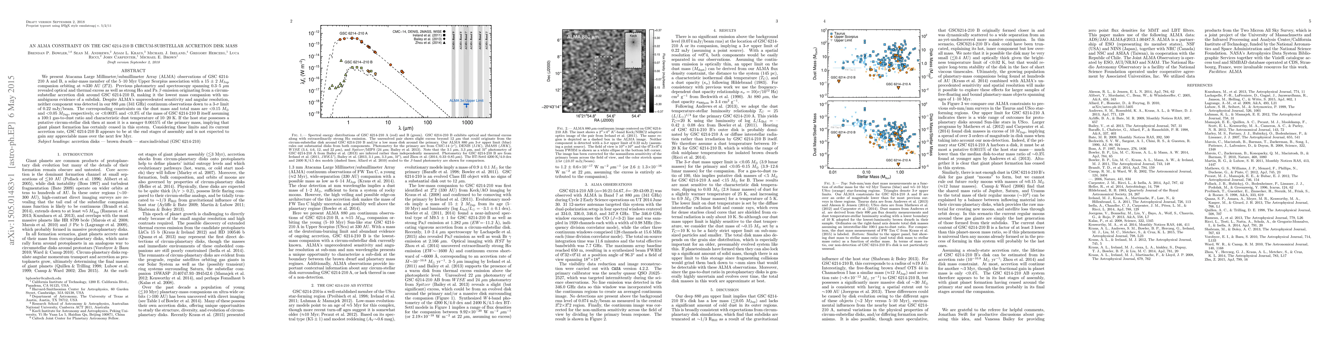 We present Atacama Large Millimeter/submillimeter Array (ALMA) observations of GSC 6214-210 A and B, a solar-mass member of the 5-10 Myr Upper Scorpius association with a 15 $\pm$ 2 Mjup companion orbiting at $\approx$330 AU (2.2"). Previous photometry and spectroscopy spanning 0.3-5 $\mu$m revealed optical and thermal excess as well as strong H$\alpha$ and Pa~$\beta$ emission originating from a circum-substellar accretion disk around GSC 6214-210 B, making it the lowest mass companion with unambiguous evidence of a subdisk. Despite ALMA's unprecedented sensitivity and angular resolution, neither component was detected in our 880 $\mu$m (341 GHz) continuum observations down to a 3-$\sigma$ limit of 0.22 mJy/beam. The corresponding constraints on the dust mass and total mass are <0.15 Mearth and <0.05 Mjup, respectively, or <0.003% and <0.3% of the mass of GSC 6214-210 B itself assuming a 100:1 gas-to-dust ratio and characteristic dust temperature of 10-20 K. If the host star possesses a putative circum-stellar disk then at most it is a meager 0.0015% of the primary mass, implying that giant planet formation has certainly ceased in this system. Considering these limits and its current accretion rate, GSC 6214-210 B appears to be at the end stages of assembly and is not expected to gain any appreciable mass over the next few Myr.