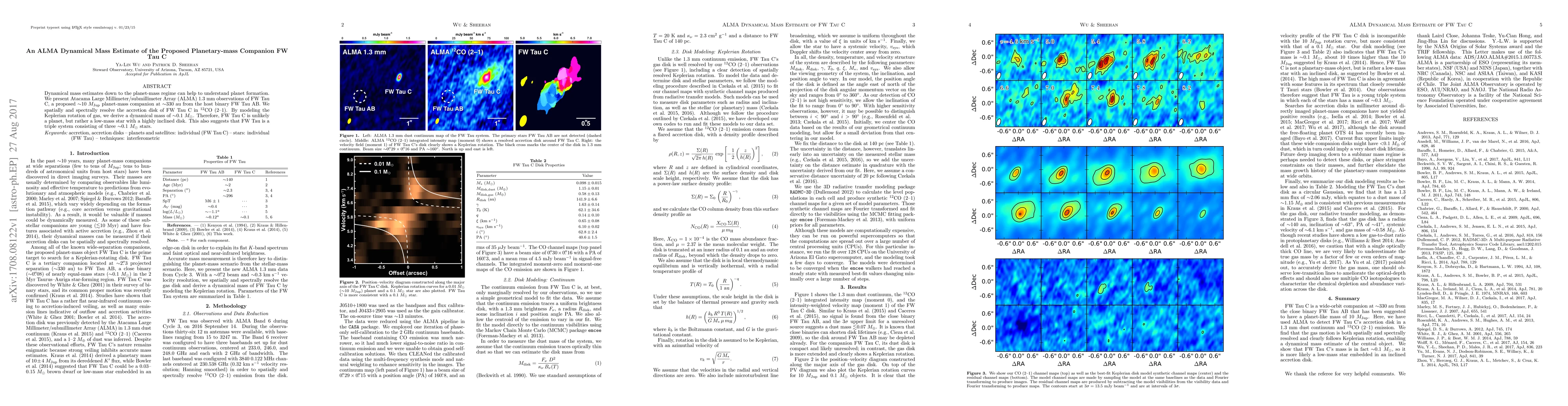 Dynamical mass estimates down to the planet-mass regime can help to understand planet formation. We present Atacama Large Millimeter/submillimeter Array (ALMA) 1.3 mm observations of FW Tau C, a proposed ~10 $M_{\rm Jup}$ planet-mass companion at ~330 au from the host binary FW Tau AB. We spatially and spectrally resolve the accretion disk of FW Tau C in ${}^{12}$CO (2-1). By modeling the Keplerian rotation of gas, we derive a dynamical mass of ~0.1 $M_\odot$. Therefore, FW Tau C is unlikely a planet, but rather a low-mass star with a highly inclined disk. This also suggests that FW Tau is a triple system consisting of three ~0.1 $M_\odot$ stars.