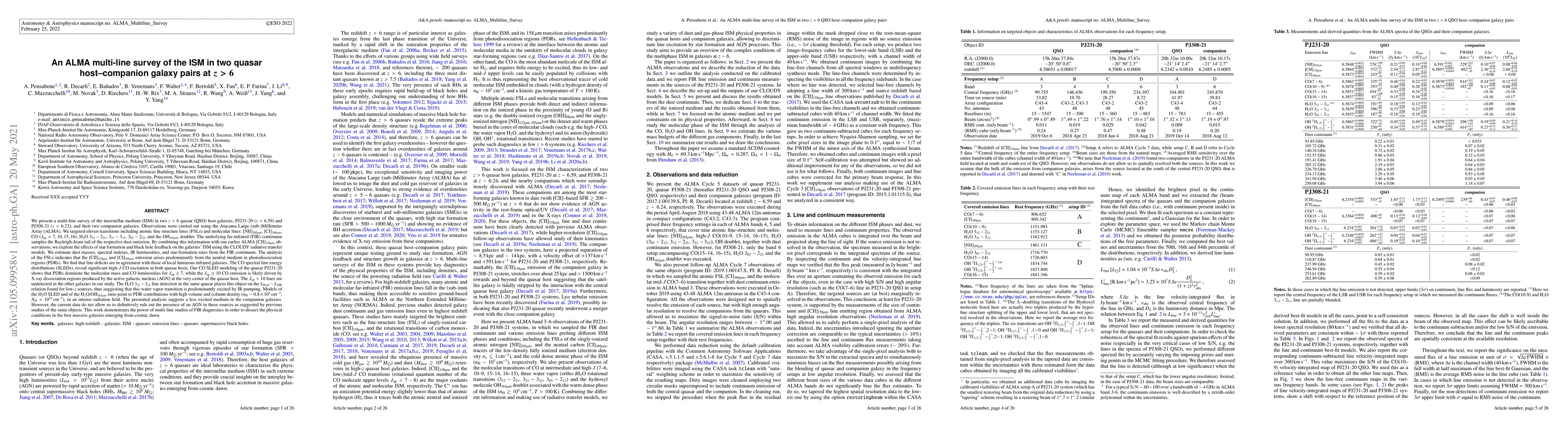This study uses ALMA to observe two quasar host galaxies and their companion galaxies at z > 6, providing insights into the interstellar medium's structure and evolution, including the role of star formation and black hole feedback.