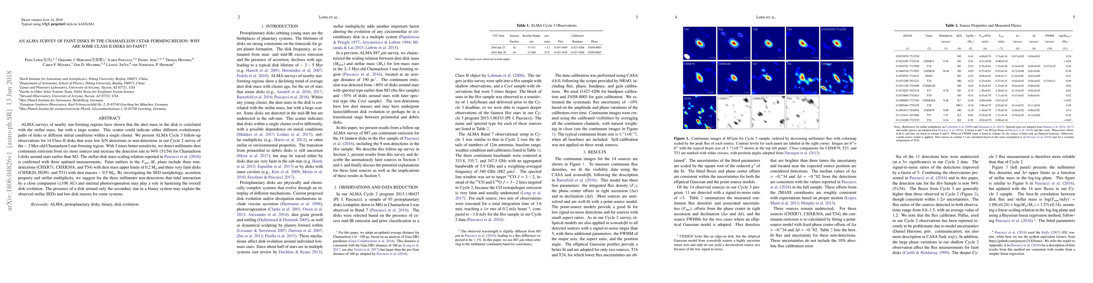 This ALMA survey of Chamaeleon I star-forming region reveals that faint disks around Class II stars often have low dust masses, potentially due to tidal interactions and internal photoevaporation, suggesting varied evolutionary paths or initial conditions. The study confirms a stellar-disk mass scaling relation but highlights the role of binary companions in disk evolution.