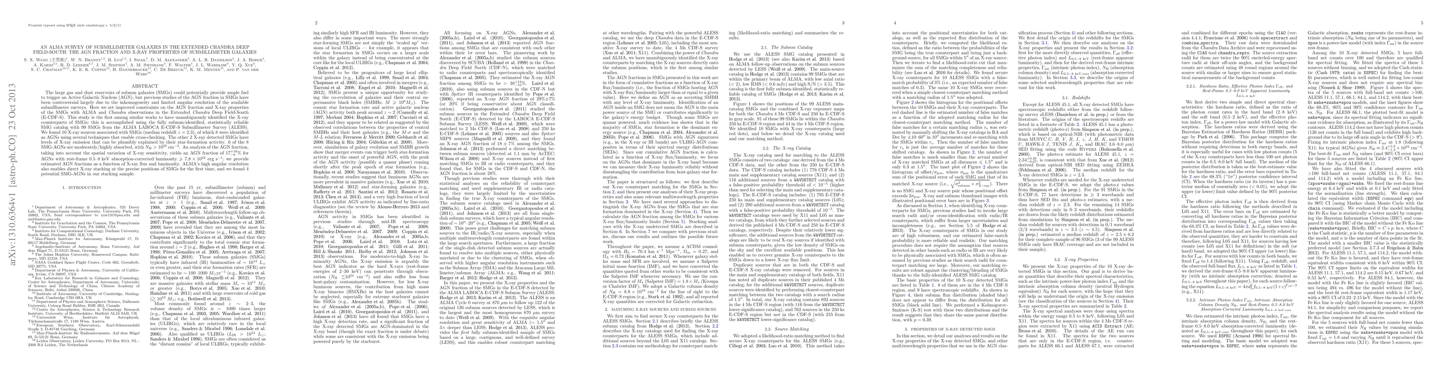 This study uses ALMA and Chandra observations to determine the AGN fraction and X-ray properties of submillimeter galaxies (SMGs) in the Extended Chandra Deep Field-South. The research found 10 X-ray sources associated with SMGs, 8 of which are identified as AGNs, yielding an AGN fraction of 17+16-6%.