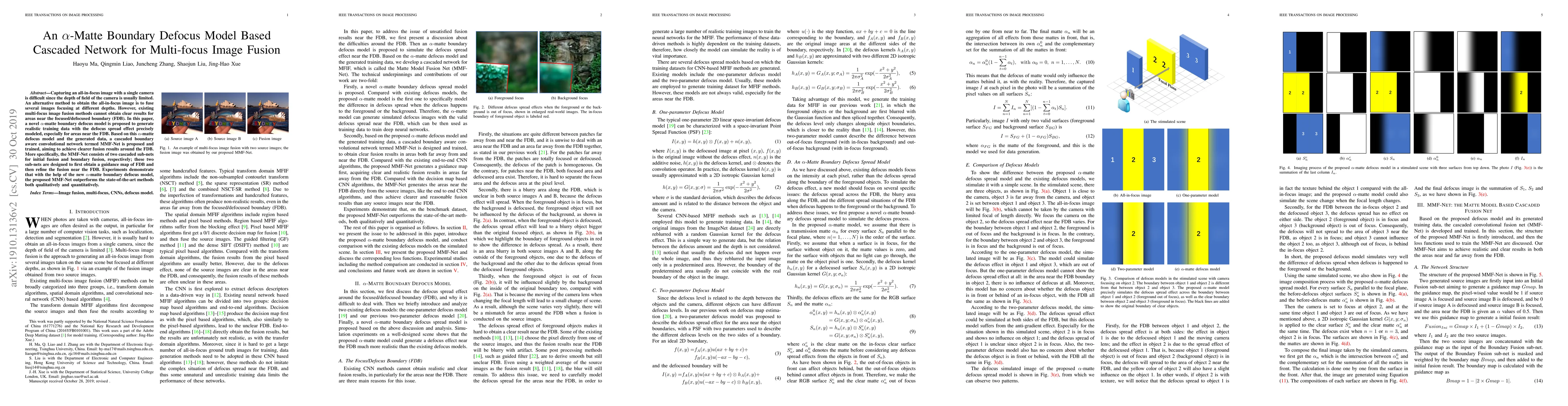 This paper proposes a novel {\alpha}-matte boundary defocus model to generate training data for multi-focus image fusion, and a cascaded convolutional network, MMF-Net, to achieve clearer fusion results near the focused/defocused boundary. The MMF-Net consists of two sub-nets for initial and boundary fusion, outperforming existing methods.