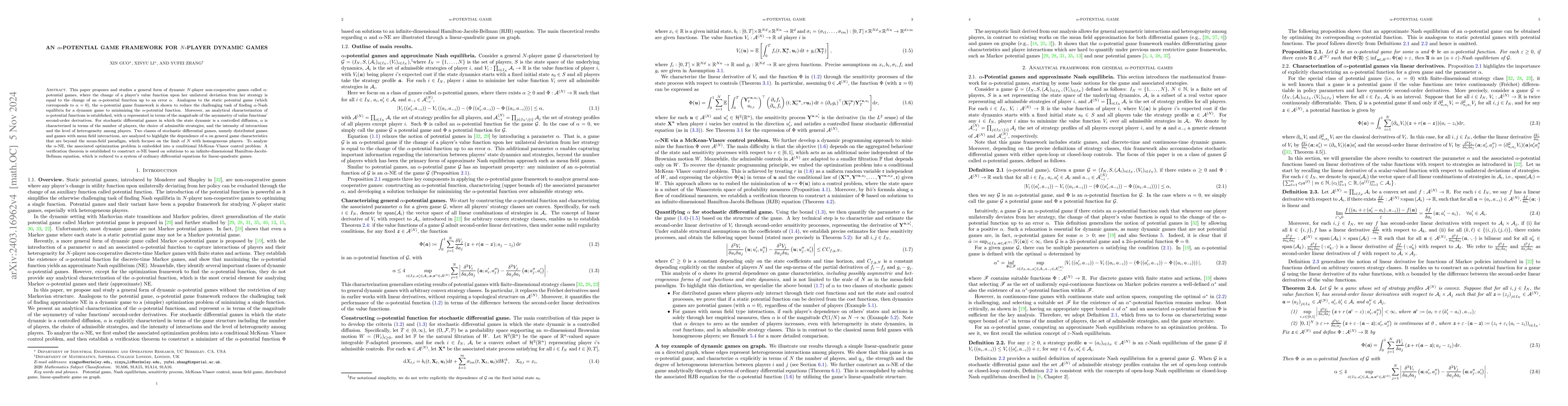 This paper introduces $\alpha$-potential games, a framework for dynamic $N$-player non-cooperative games where player value changes relate to an $\alpha$-potential function. It simplifies finding approximate Nash equilibria by minimizing the $\alpha$-potential, and analytically characterizes $\alpha$ in terms of value function asymmetry and player interactions.