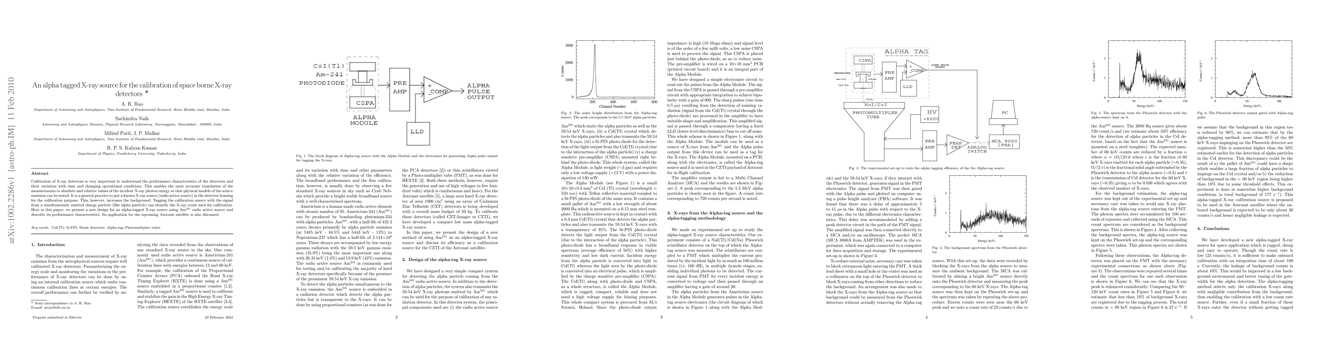 This paper presents a new alpha-tagged X-ray source design using Am^241 for calibrating spaceborne X-ray detectors, minimizing background noise. The method employs simultaneous emission of alpha particles to identify calibration events, enhancing accuracy for physical models testing on the Astrosat satellite.