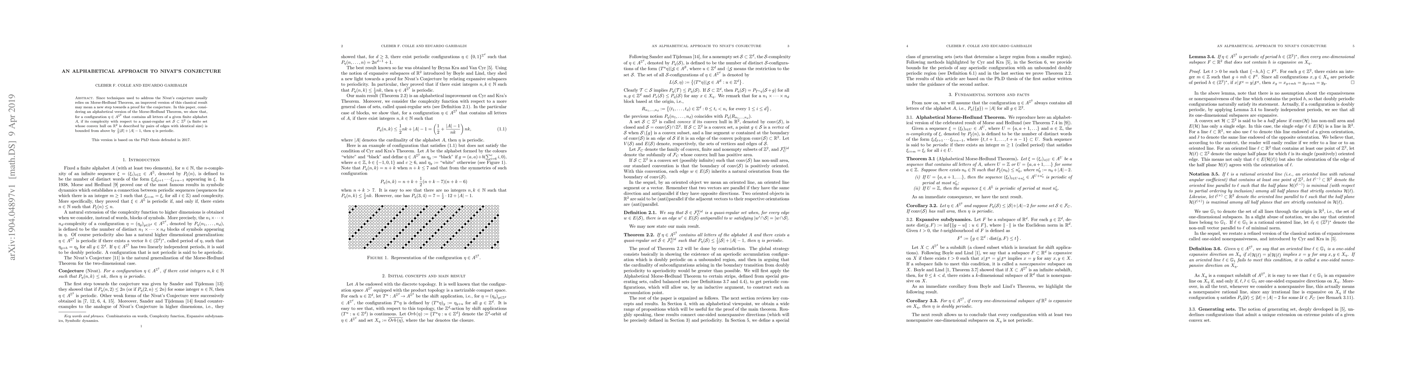 This paper improves upon Nivat's Conjecture by introducing an alphabetical approach to the Morse-Hedlund Theorem, showing that configurations with certain bounded complexity are periodic.