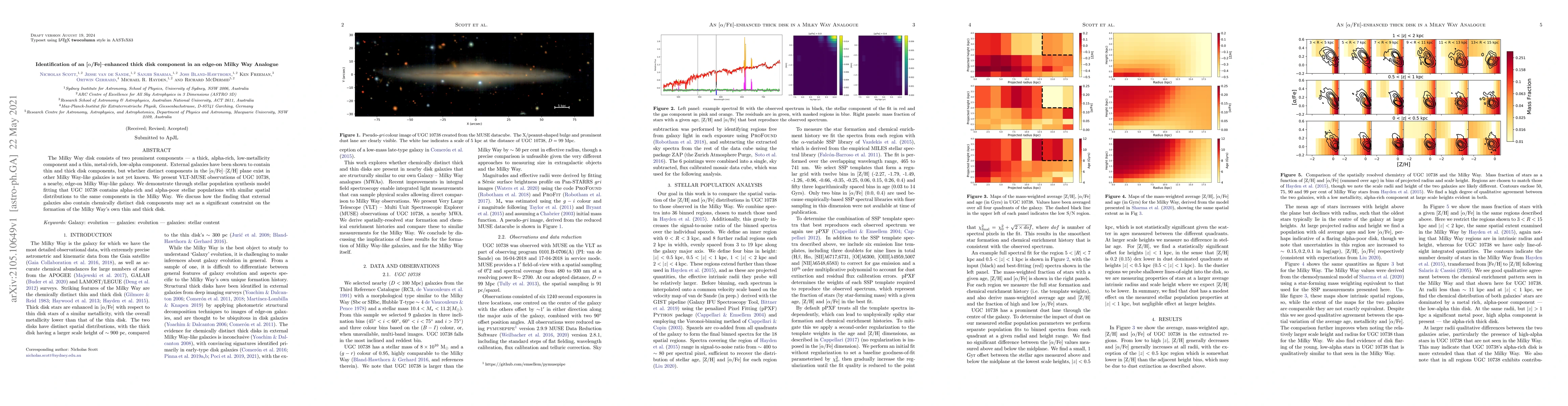 This paper uses VLT-MUSE observations to show that UGC 10738, a Milky Way analogue, has a thick disk with alpha-enhanced stars similar to the Milky Way's thick disk. The findings suggest that the formation of the Milky Way's thin and thick disks may be constrained by the presence of chemically distinct disk components in similar galaxies.