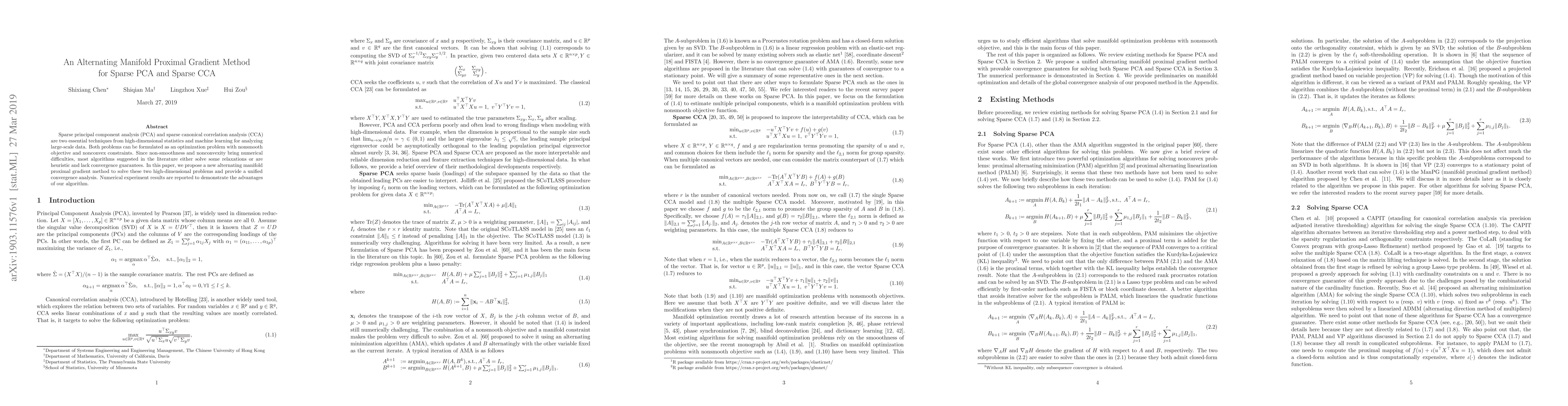 This paper proposes an alternating manifold proximal gradient method to tackle sparse PCA and sparse CCA, offering a new approach to handle their non-smooth and nonconvex optimization problems. The method provides a unified convergence analysis and demonstrates superior performance through numerical experiments.