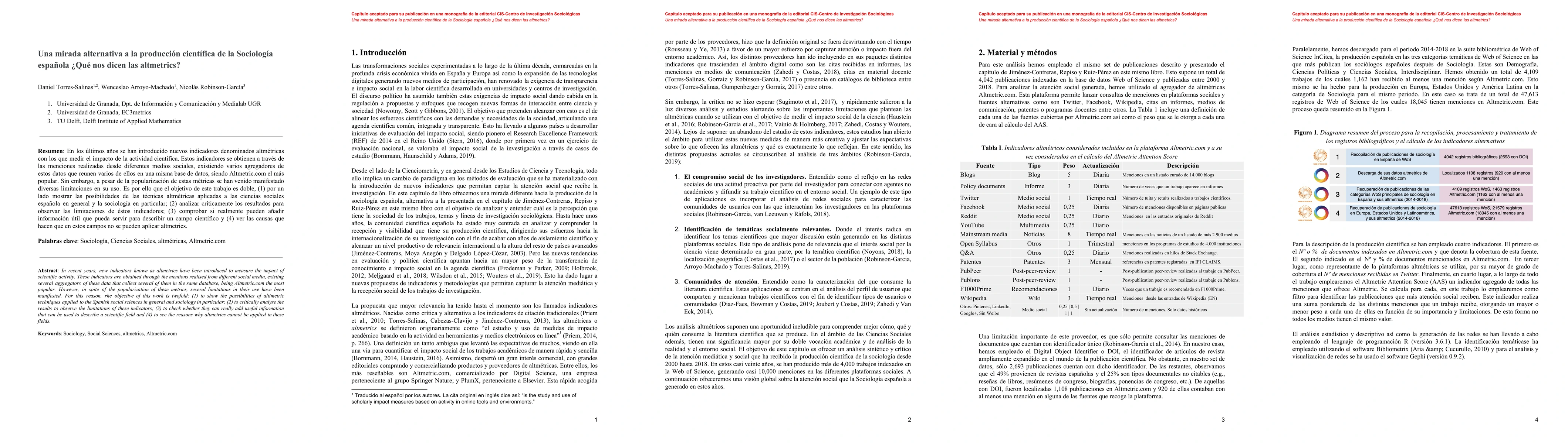 In recent years, new indicators known as altmetrics have been introduced to measure the impact of scientific activity. These indicators are obtained through the mentions realised from different social media, existing several aggregators of these data that collect several of them in the same database, being Altmetric.com the most popular. However, in spite of the popularization of these metrics, several limitations in their use have been manifested. For this reason, rhe objective of this work is twofold: (1) to show the possibilities of altimetric techniques applied to the Spanish social sciences in general and sociology in particular; (2) to critically analyse the results to observe the limitations of these indicators; (3) to check whether they can really add useful information that can be used to describe a scientific field and (4) to see the reasons why altmetrics cannot be applied in these fields.