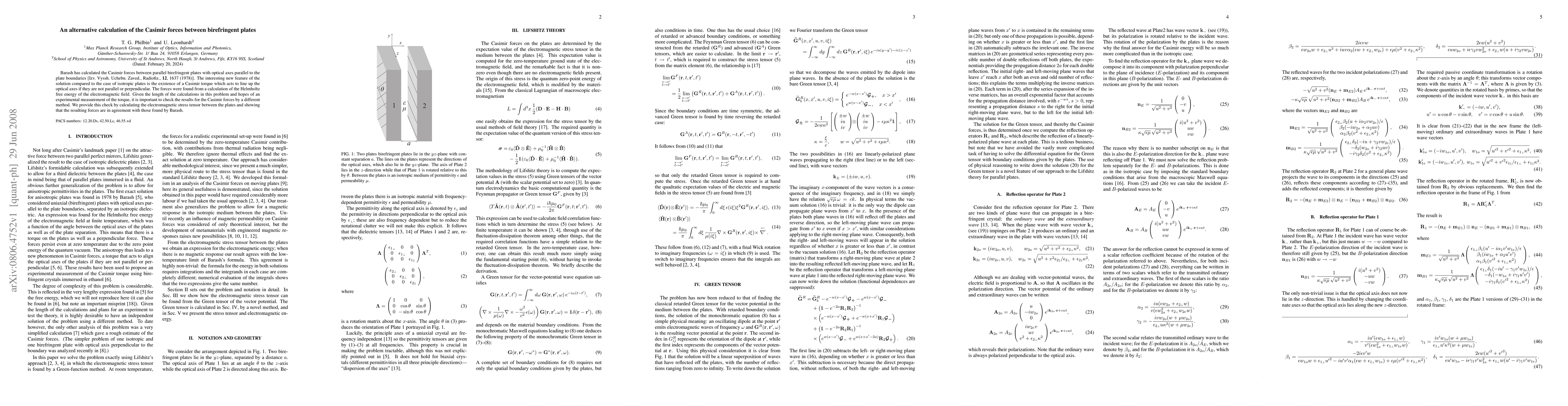 This paper presents an alternative method to verify Barash's calculation of Casimir forces between birefringent plates, focusing on the existence of a Casimir torque that aligns the optical axes. The authors use the electromagnetic stress tensor to confirm the forces, ensuring consistency with Barash's results.