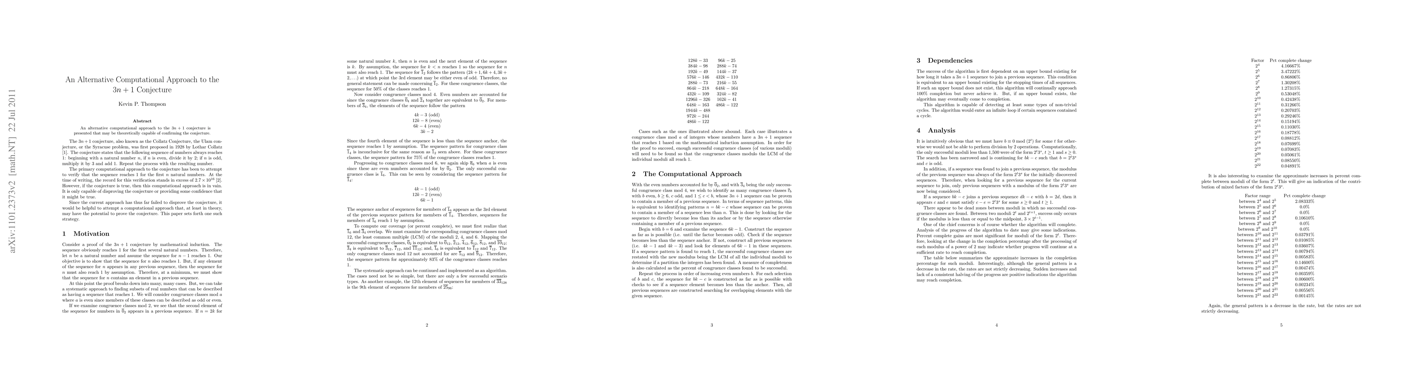 An alternative computational approach to the Collatz (3n+1) conjecture is presented that may be theoretically capable of confirming the conjecture.