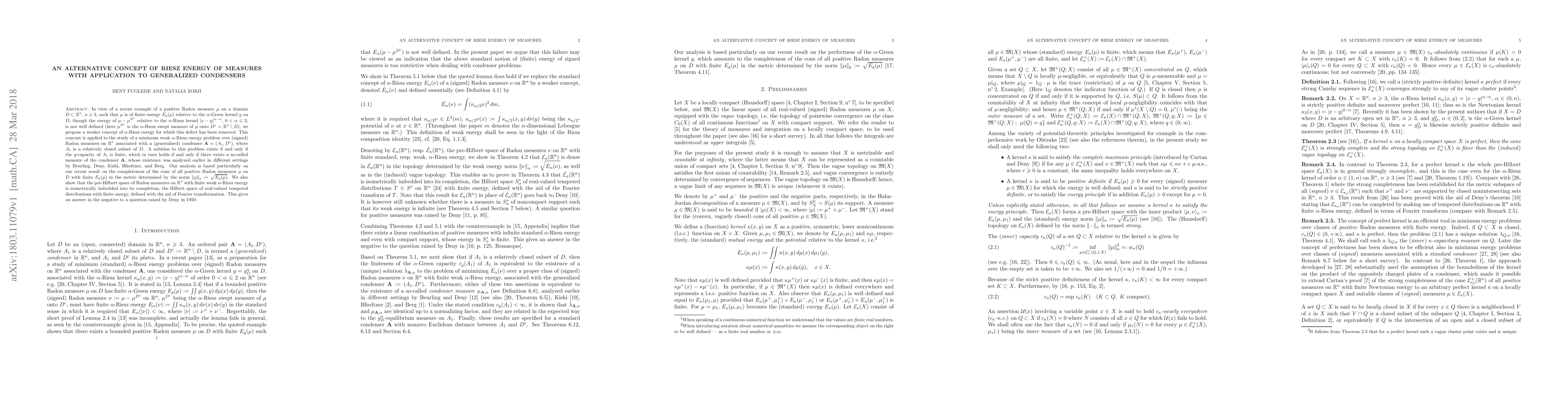 This paper proposes a new concept of $\alpha$-Riesz energy for measures to address the issue of undefined energy in certain cases, and applies it to generalized condensers. It establishes the existence of a solution to a minimum weak $\alpha$-Riesz energy problem if the $g$-capacity of a subset is finite, and shows the pre-Hilbert space of Radon measures with finite weak $\alpha$-Riesz energy embeds into a Hilbert space of tempered distributions.