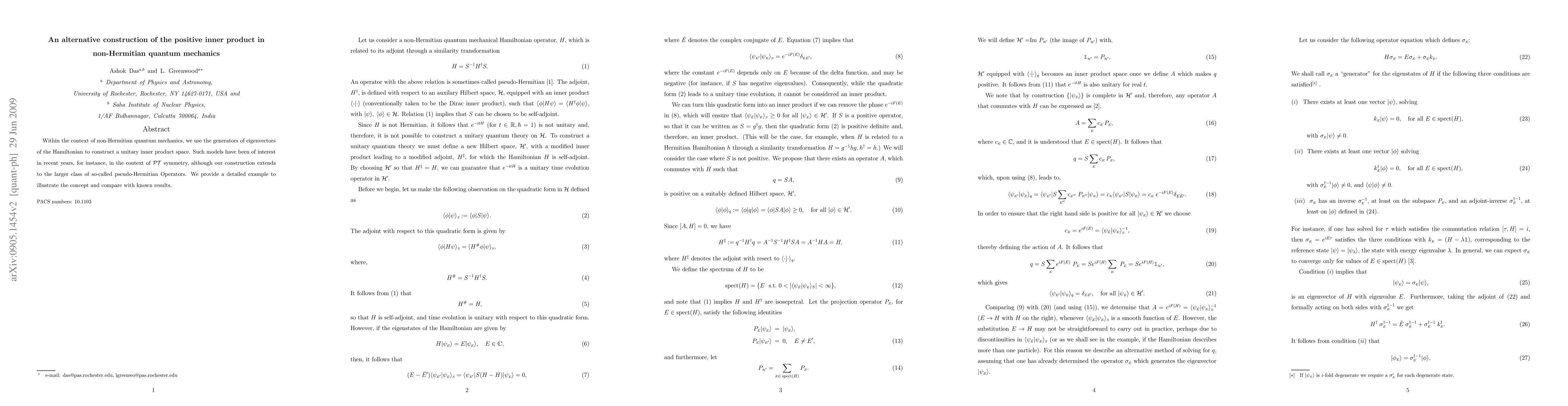 Within the context of non-Hermitian quantum mechanics, we use the generators of eigenvectors of the Hamiltonian to construct a unitary inner product space. Such models have been of interest in recent years, for instance, in the context of ${\cal PT}$ symmetry, although our construction extends to the larger class of so-called pseudo-Hermitian Operators. We provide a detailed example to illustrate the concept and compare with known results.
