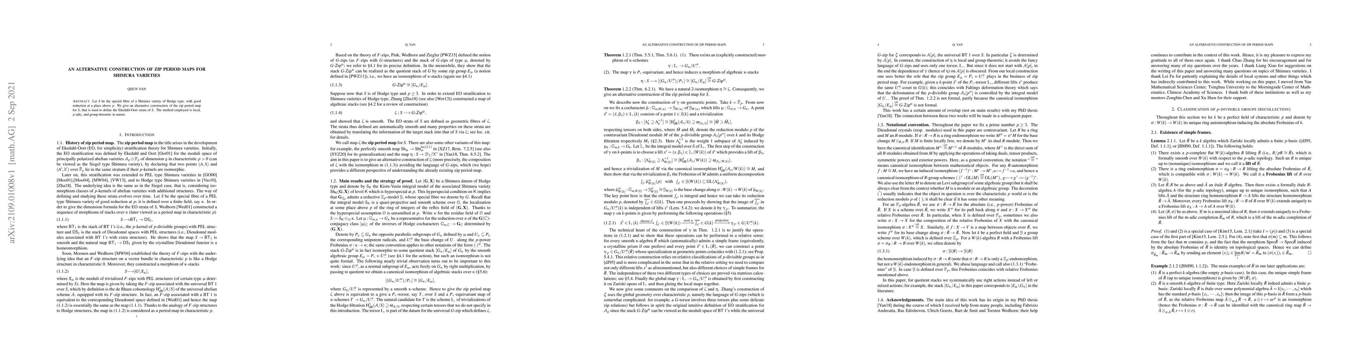 Let $S$ be the special fibre of a Shimura variety of Hodge type, with good reduction at a place above $p$. We give an alternative construction of the zip period map for $S$, which is used to define the Ekedahl-Oort strata of $S$. The method employed is local, $p$-adic, and group-theoretic in nature.