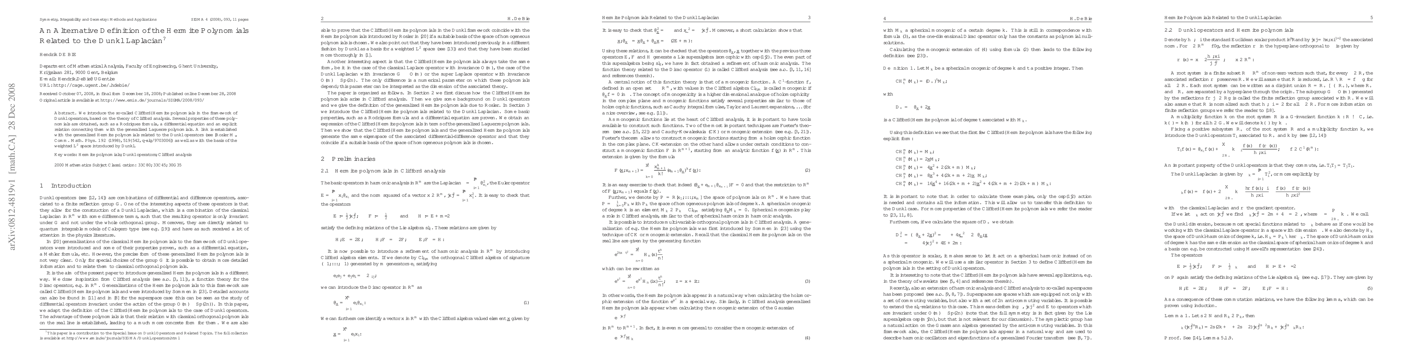 Researchers introduce Clifford-Hermite polynomials related to Dunkl operators, establishing connections with generalized Hermite and Laguerre polynomials, and linking them to a weighted L^2 space.