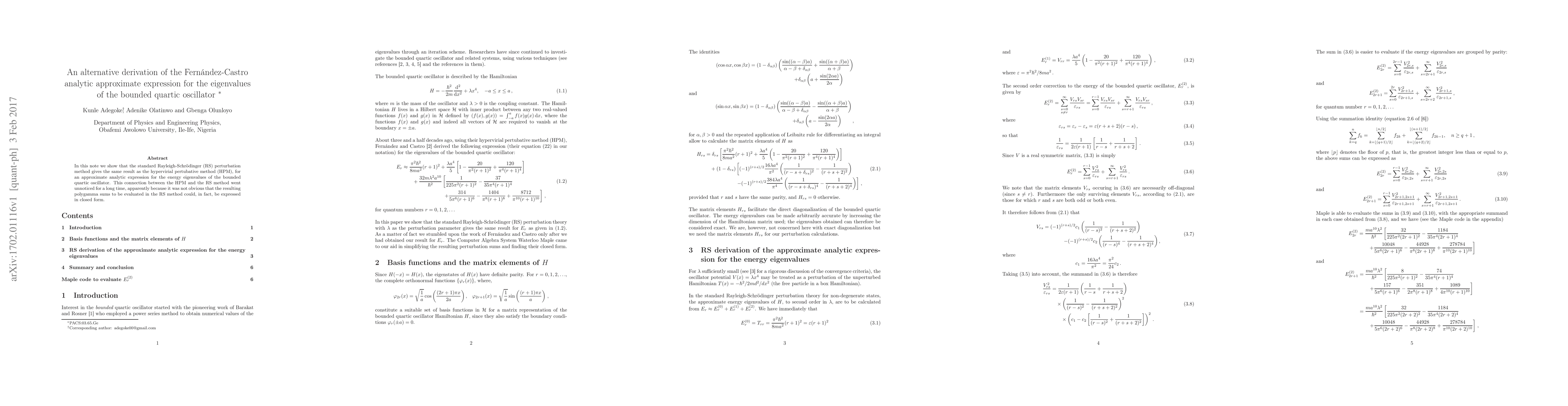 In this note we show that the standard \mbox{Rayleigh-Schr\"odinger} (RS) perturbation method gives the same result as the hypervirial pertubative method (HPM), for an approximate analytic expression for the energy eigenvalues of the bounded quartic oscillator. This connection between the HPM and the RS method went unnoticed for a long time, apparently because it was not obvious that the resulting polygamma sums to be evaluated in the RS method could, in fact, be expressed in closed form.