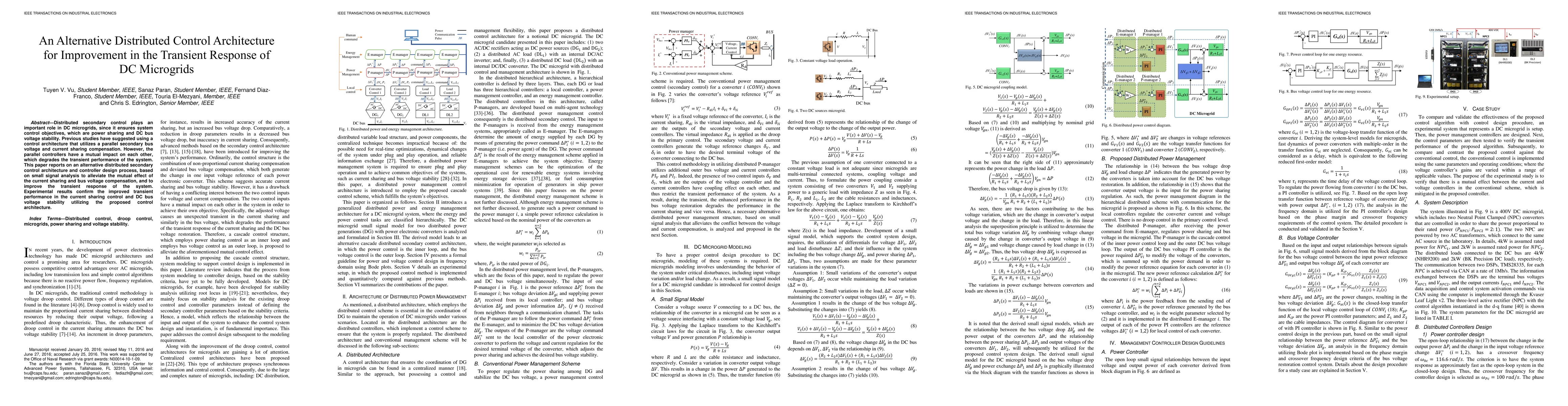 This paper proposes an alternative distributed secondary control architecture to enhance the transient response of DC microgrids by addressing the mutual impact of parallel controllers. Experimental results demonstrate improved transient performance and DC bus voltage stability using the new control design.