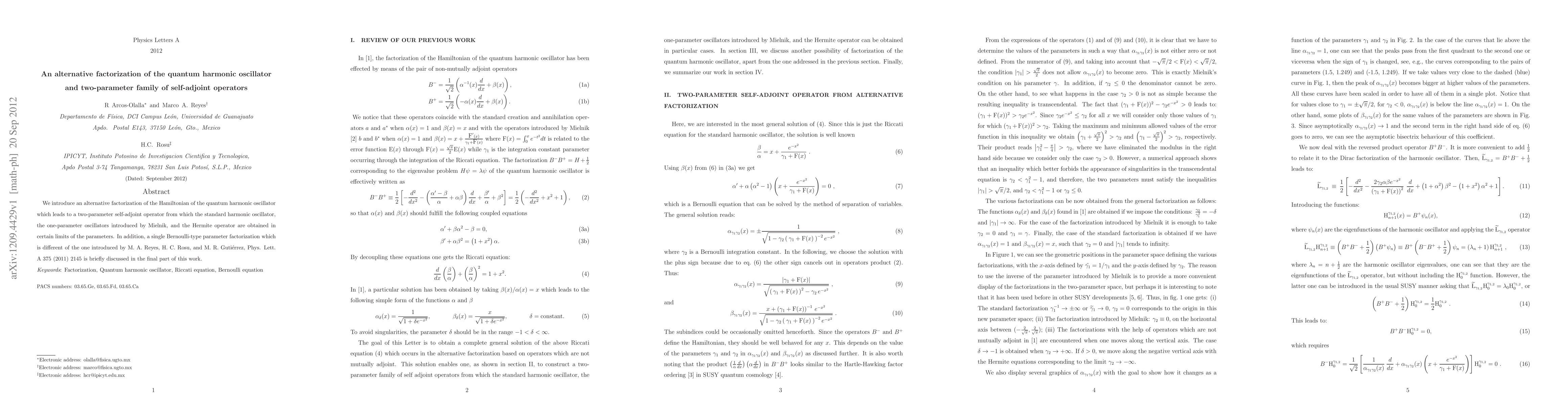 This paper presents an alternative factorization of the quantum harmonic oscillator's Hamiltonian, resulting in a two-parameter self-adjoint operator that encompasses the standard oscillator and other variants in specific parameter limits. The work also briefly discusses a distinct Bernoulli-type parameter factorization.