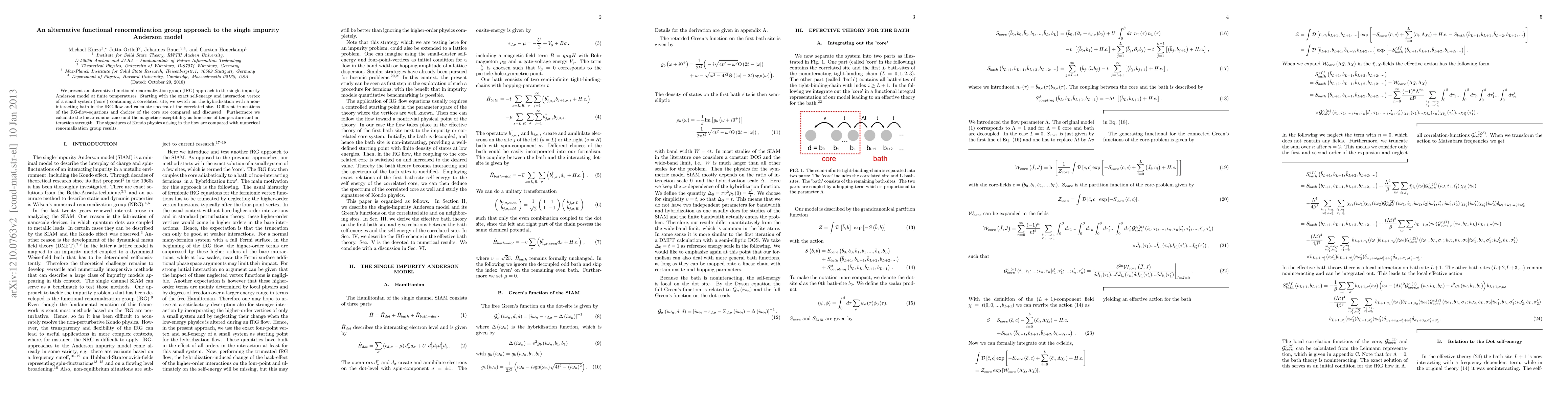 This paper proposes an alternative functional renormalization group approach for studying the single-impurity Anderson model at finite temperatures, calculating spectra, linear conductance, and magnetic susceptibility, and comparing Kondo physics signatures with numerical renormalization group results. The study examines different truncations and core choices within the fRG framework.