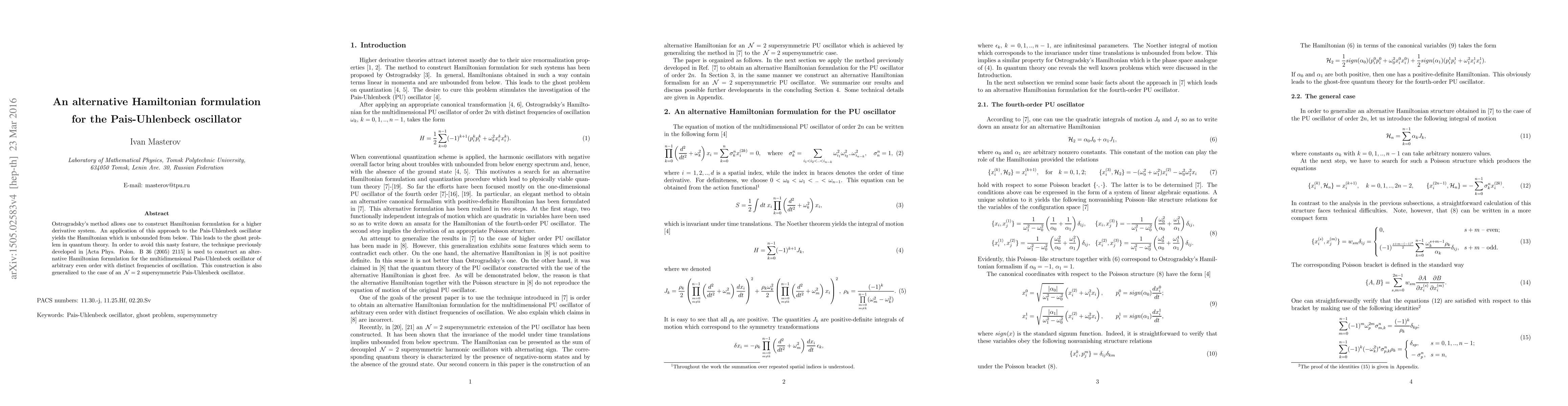 This paper presents an alternative Hamiltonian formulation for the Pais-Uhlenbeck oscillator using Ostrogradsky's method, which resolves the unbounded-from-below issue and associated ghost problem in quantum theory. The construction is extended to multidimensional and supersymmetric versions of the oscillator.
