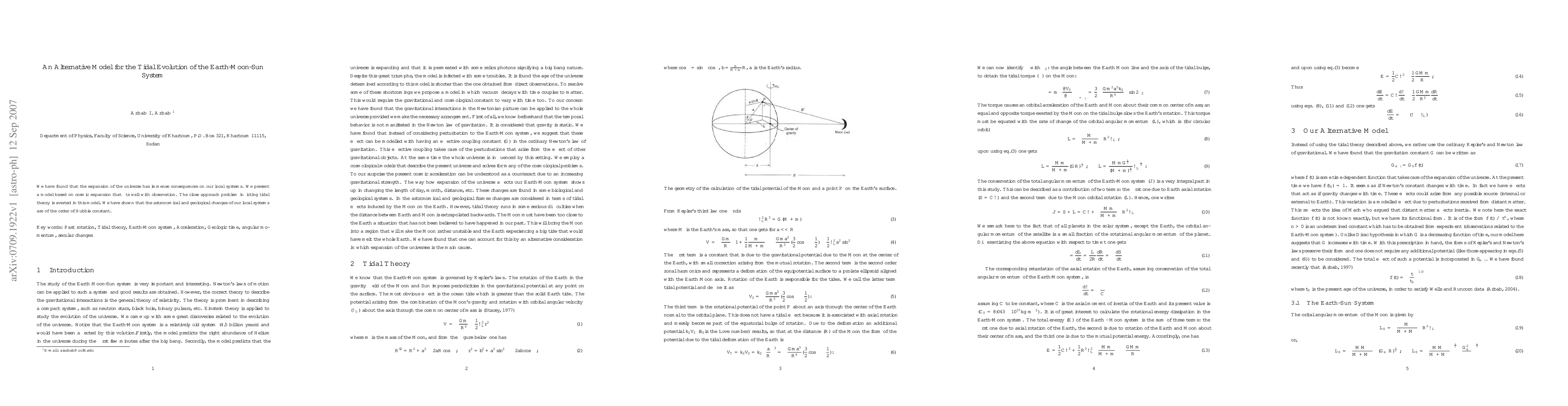 We have found that the expansion of the universe has immense consequences on our local systems. We present a model based on cosmic expansion that fits well with observation. The close approach problem inflicting tidal theory is averted in this model. We have shown that the astronomical and geological changes of our local systems are of the order of Hubble constant.