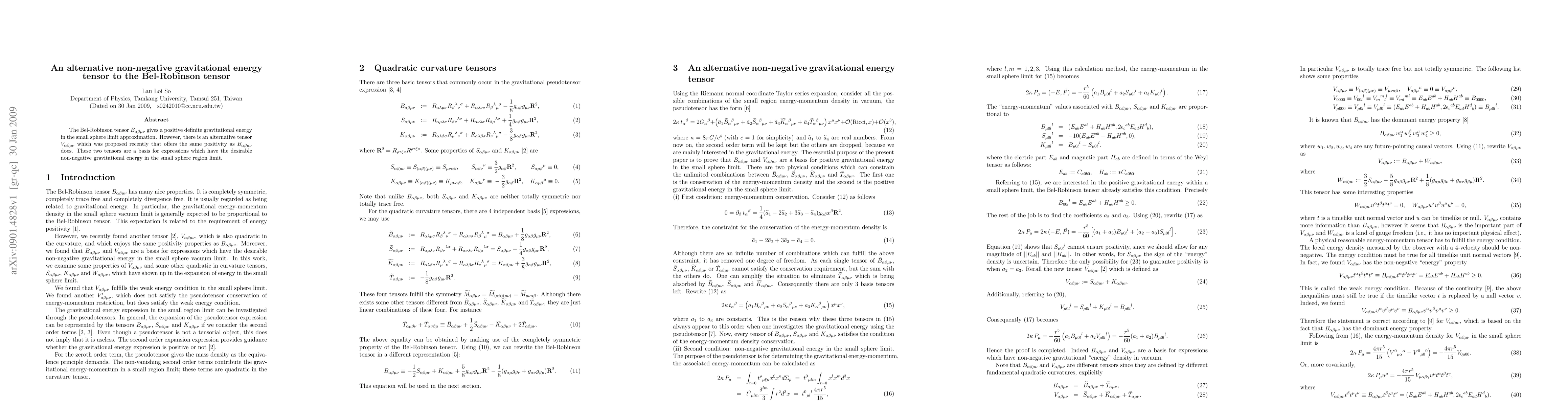 Researchers propose an alternative gravitational energy tensor that offers non-negative gravitational energy in the small sphere limit, building on recent work.