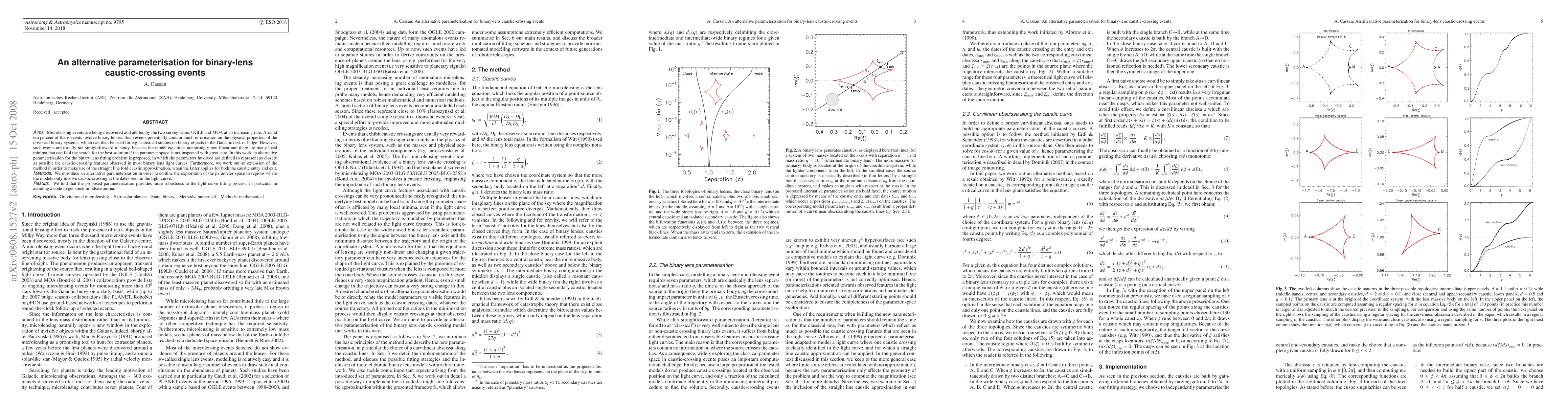 This paper proposes an alternative parameterisation for binary-lens caustic-crossing events in microlensing, aiming to simplify the fitting process by closely representing observed caustic-crossing features. The new method helps avoid false minima in parameter space, enhancing the robustness of light curve fitting.
