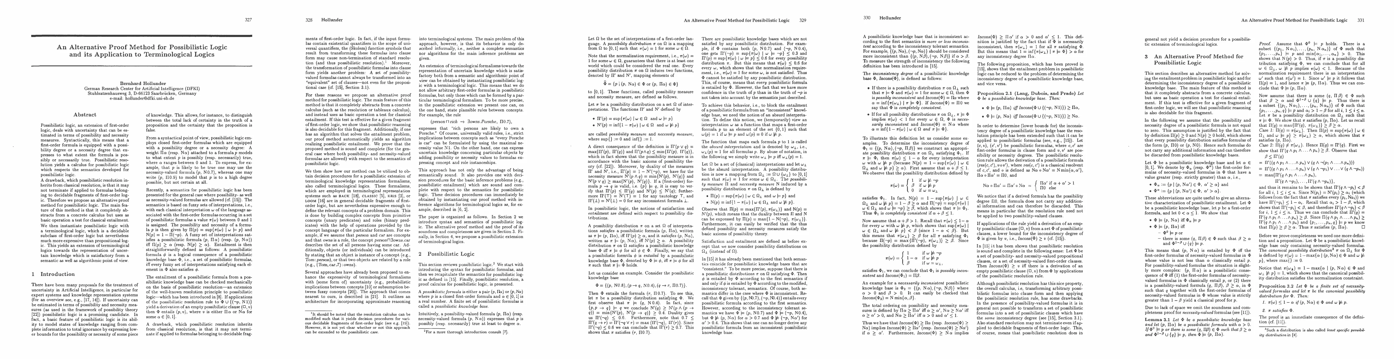 This paper proposes an alternative proof method for possibilistic logic that abstracts from a concrete calculus and uses a test for classical entailment, addressing the non-termination issue of possibilistic resolution. It applies this method to terminological logics, extending them to represent uncertain knowledge effectively.