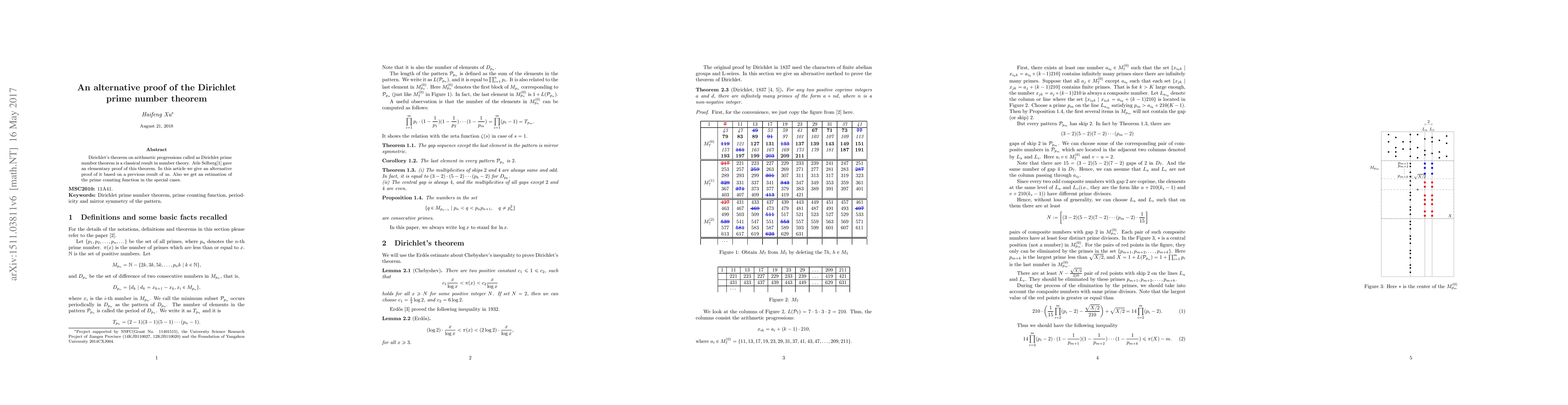 This paper presents an alternative proof of Dirichlet's prime number theorem, which states that there are infinitely many primes in any arithmetic progression where the first term and common difference are coprime. The authors build on a previous result to provide this new proof and also estimate the prime counting function in specific cases.