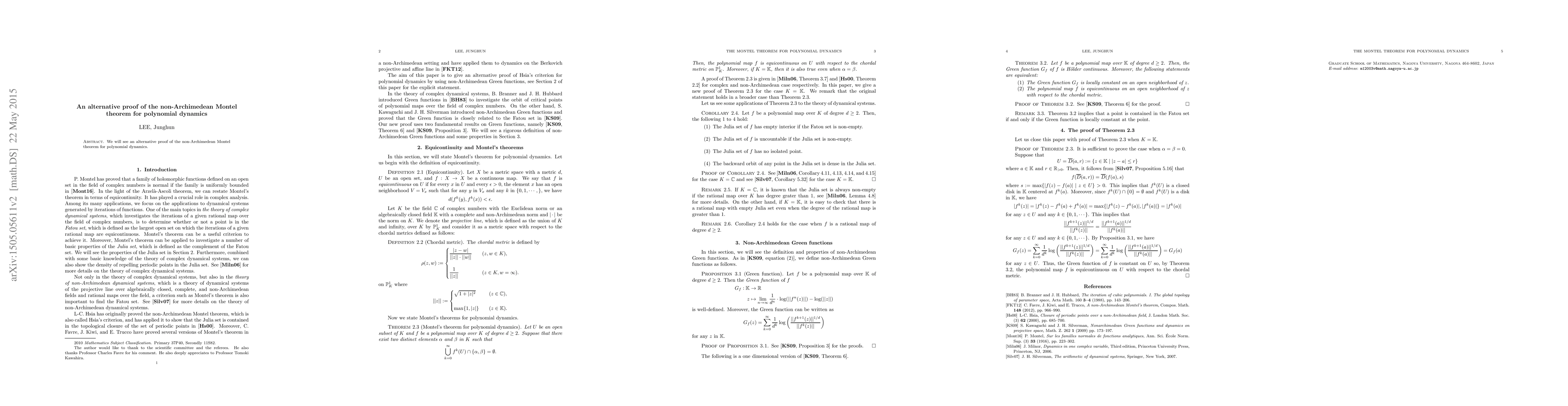 Researchers provide an alternative proof of the non-Archimedean Montel theorem for polynomial dynamics, a crucial concept in understanding dynamic systems with non-standard scales.