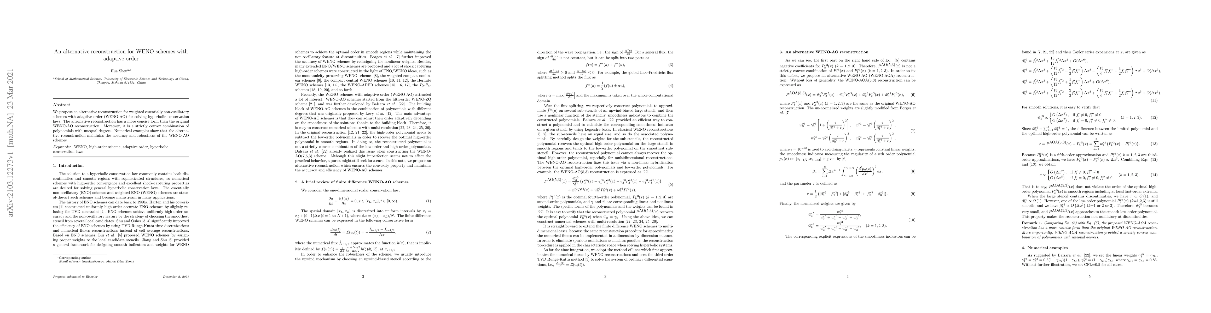 This paper introduces an alternative, more concise reconstruction for adaptive order weighted essentially non-oscillatory (WENO-AO) schemes, maintaining accuracy and robustness while being a strictly convex combination of polynomials with unequal degrees. Numerical results confirm its effectiveness.