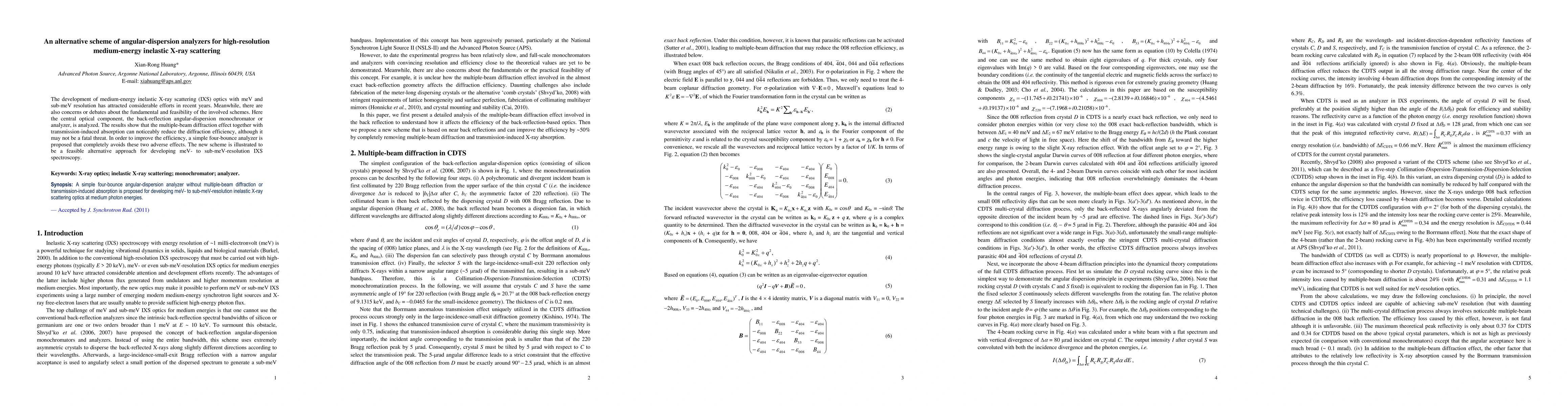 This paper proposes a new four-bounce angular-dispersion analyzer to enhance the efficiency of medium-energy inelastic X-ray scattering (IXS) optics, addressing the adverse effects of multiple-beam diffraction and transmission-induced absorption. The new scheme is shown to be a viable alternative for achieving meV to sub-meV resolution in IXS spectroscopy.