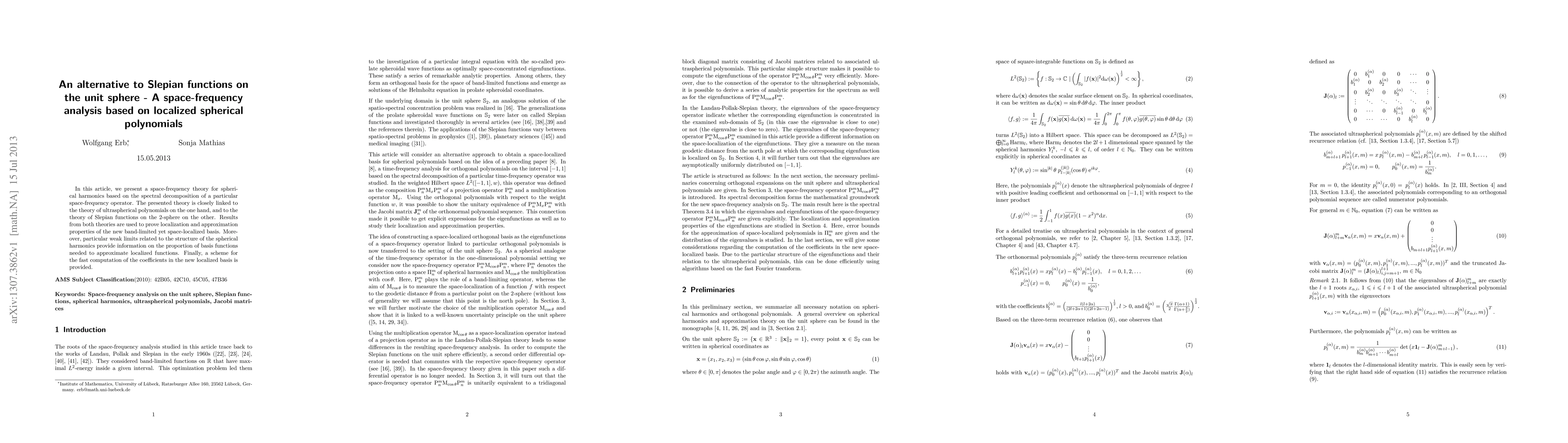 Researchers develop a new basis for space-frequency analysis on the unit sphere, building on theories of ultraspherical polynomials and Slepian functions, with implications for fast computation and approximating localized functions.