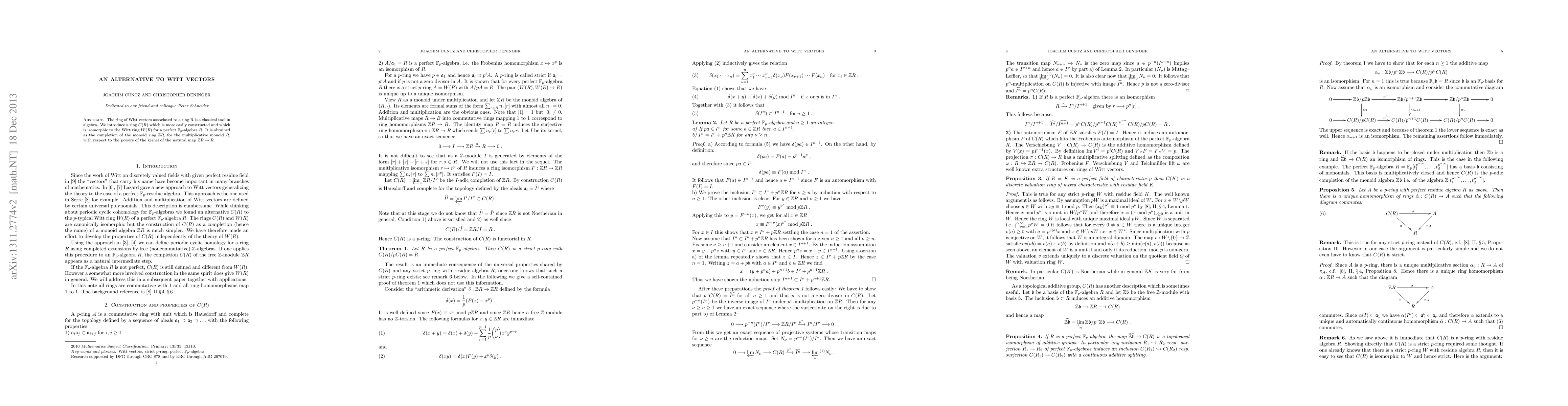 This paper introduces a ring C(R) that serves as an alternative to the classical Witt vectors W(R) for perfect F_p-algebras R. C(R) is constructed as the completion of the monoid ring ZR with respect to the kernel of the natural map from ZR to R, and it is shown to be isomorphic to W(R).