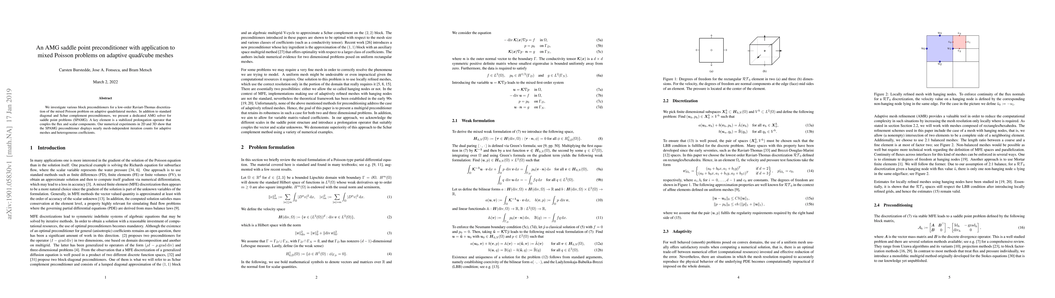 We investigate various block preconditioners for a low-order Raviart-Thomas discretization of the mixed Poisson problem on adaptive quadrilateral meshes. In addition to standard diagonal and Schur complement preconditioners, we present a dedicated AMG solver for saddle point problems (SPAMG). A key element is a stabilized prolongation operator that couples the flux and scalar components. Our numerical experiments in 2D and 3D show that the SPAMG preconditioner displays nearly mesh-independent iteration counts for adaptive meshes and heterogeneous coefficients.