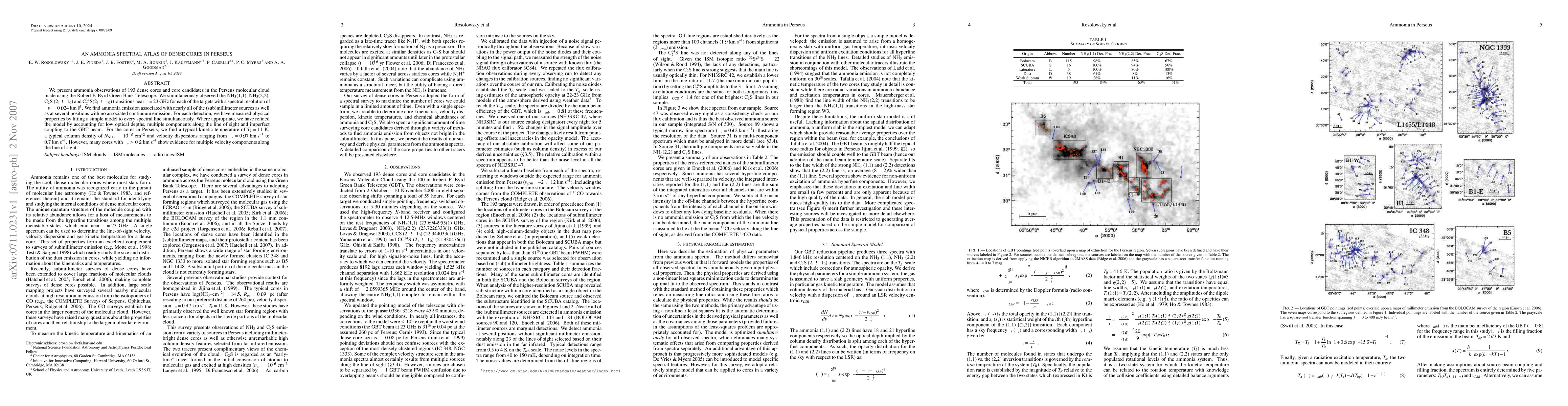 This paper presents ammonia spectral observations of 193 dense cores in the Perseus molecular cloud, revealing emission associated with most (sub)millimeter sources and detecting physical properties like kinetic temperature and column density. Many cores exhibit multiple velocity components, indicating complex dynamics.