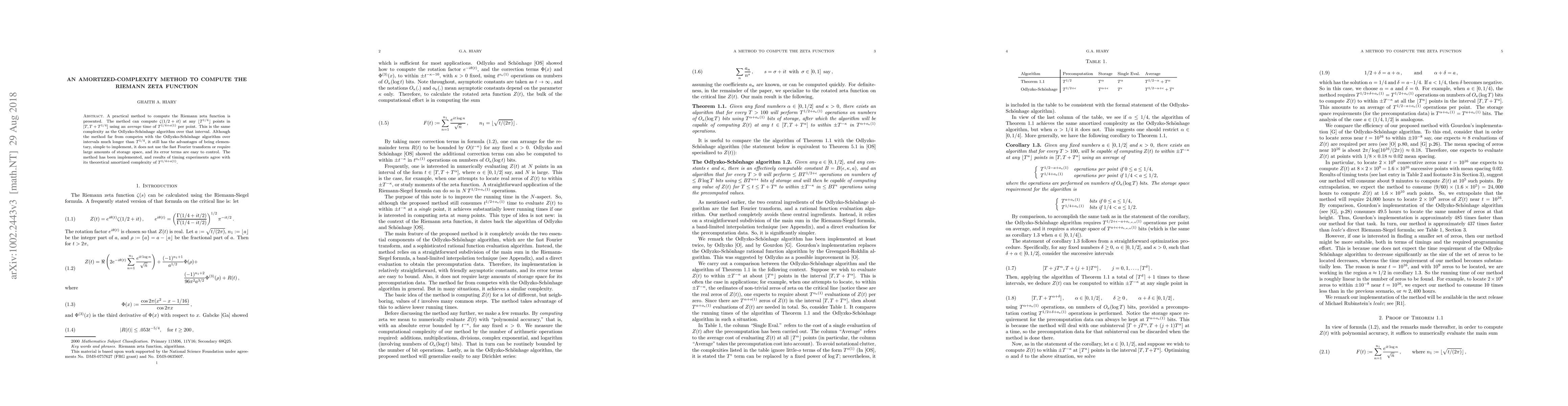 This paper introduces an amortized-complexity method for computing the Riemann zeta function, achieving an average time complexity of $T^{1/4+o(1)}$ per point over intervals of length $T^{1/4}$. While not as efficient as the Odlyzko-Schönhage algorithm for longer intervals, it is simpler, easier to implement, and requires less storage and computational resources.