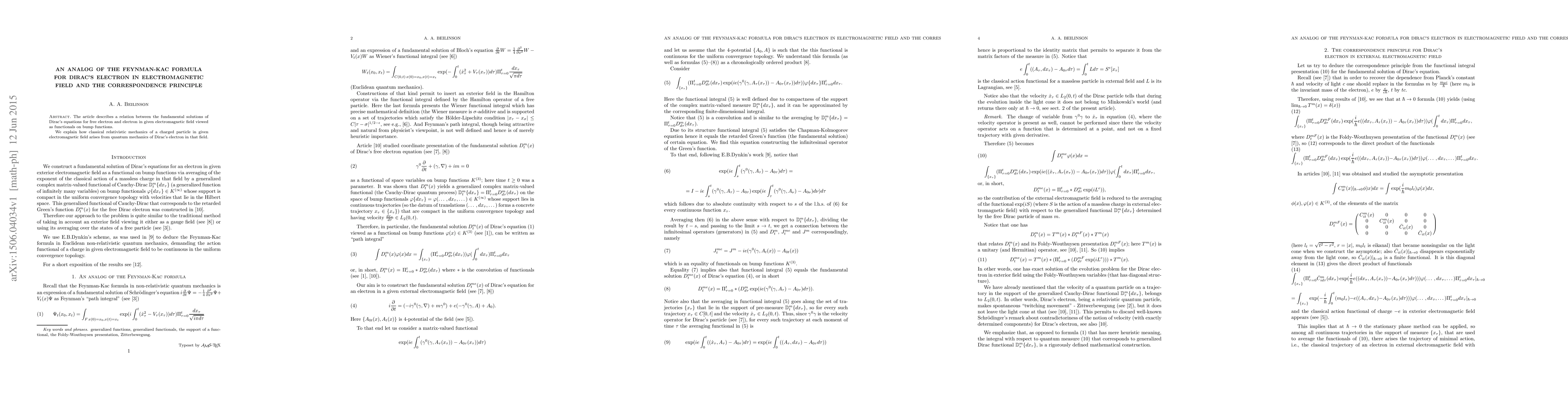 The article describes a relation between the fundamental solutions of Dirac's equations for free electron and electron in given electromagnetic field viewed as functionals on bump functions. We explain how classical relativistic mechanics of a charged particle in given electromagnetic field arises from quantum mechanics of Dirac's electron in that field.